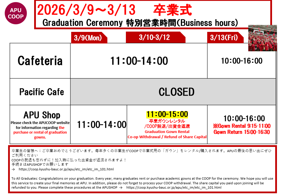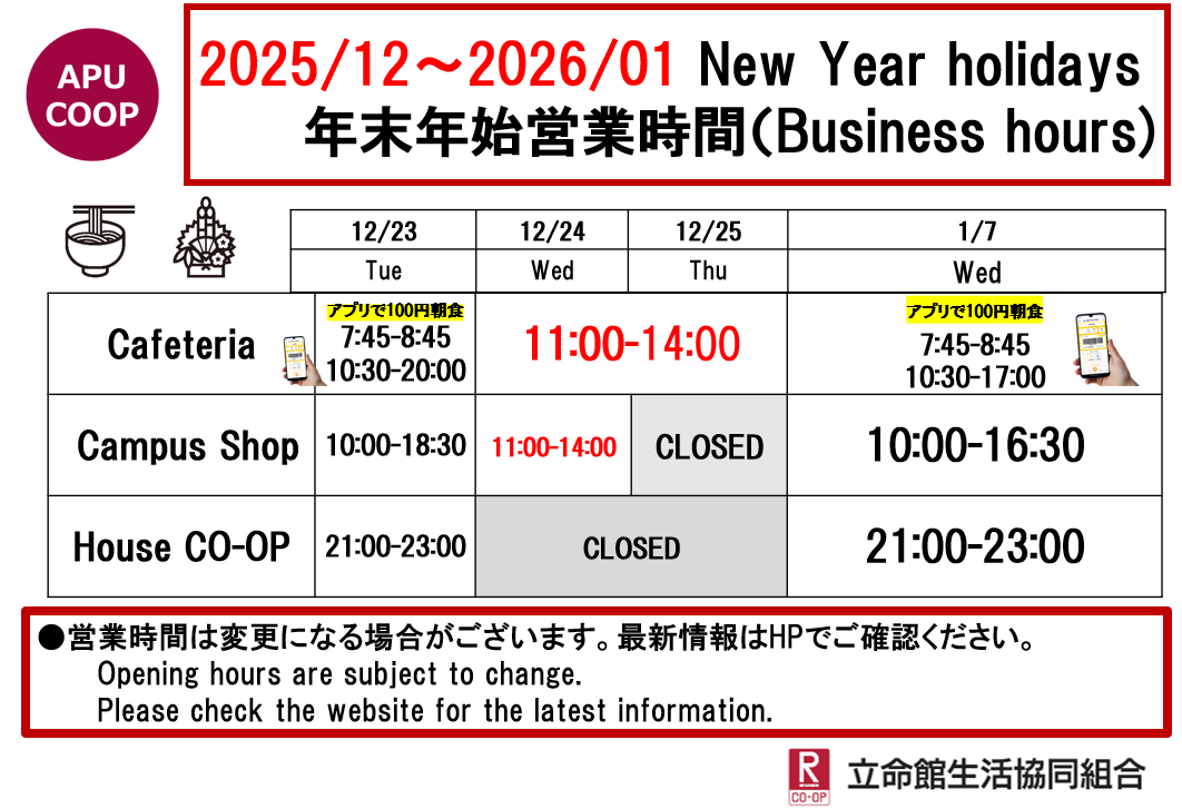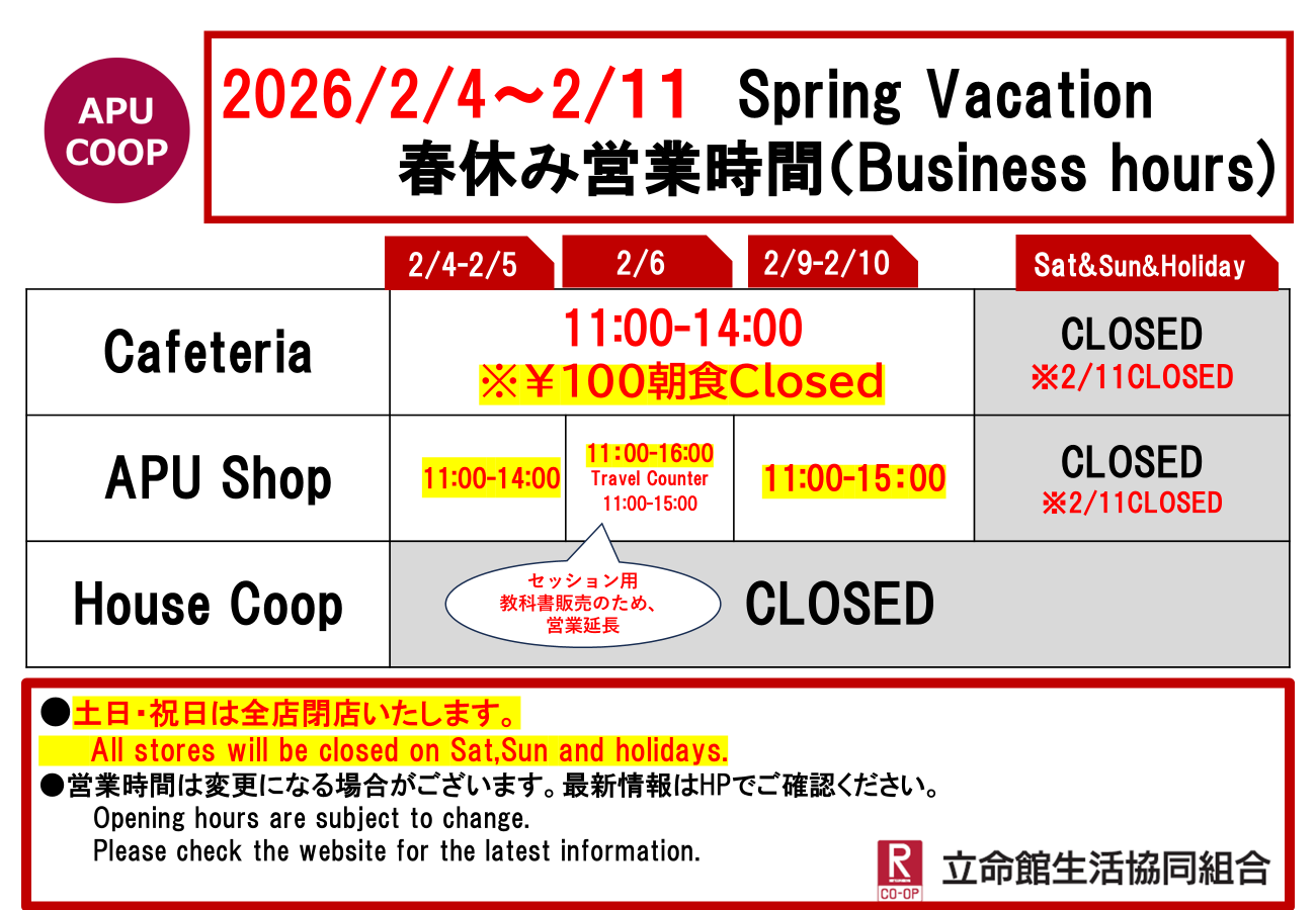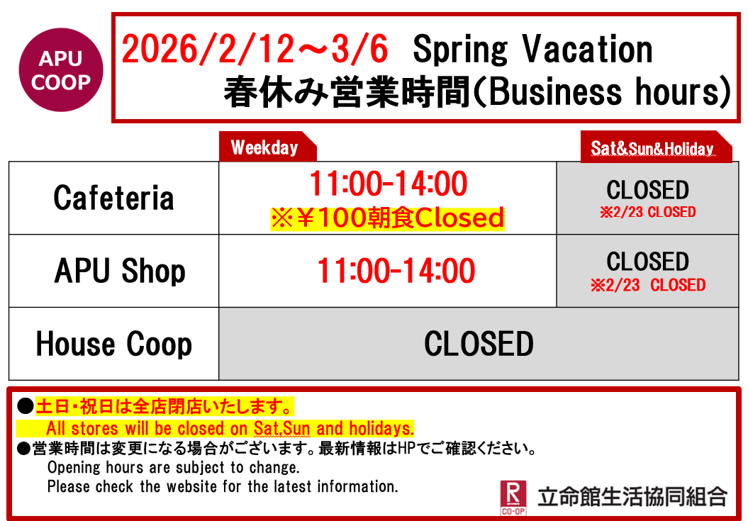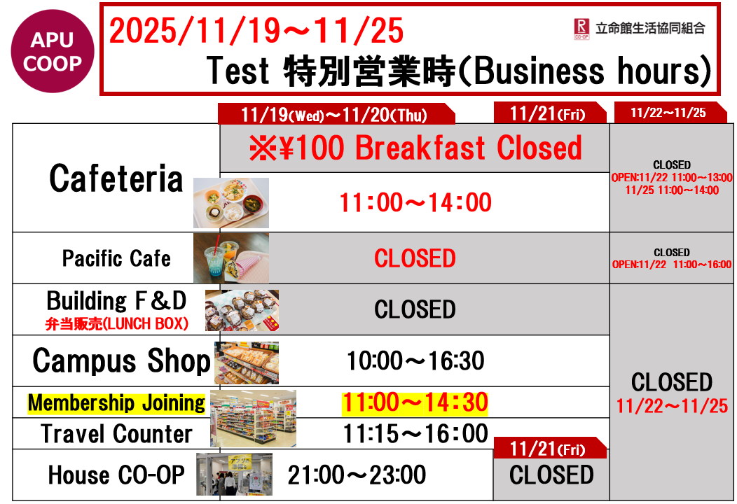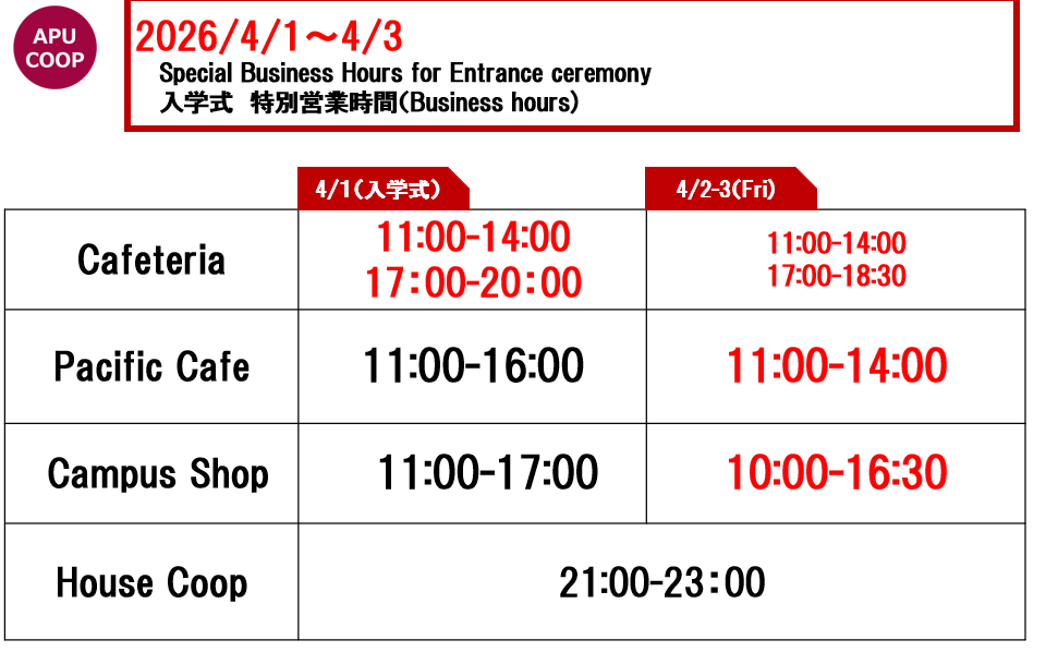 ショップのテイクアウト商品のご利用による食堂混雑緩和にもご協力をお願いいたします