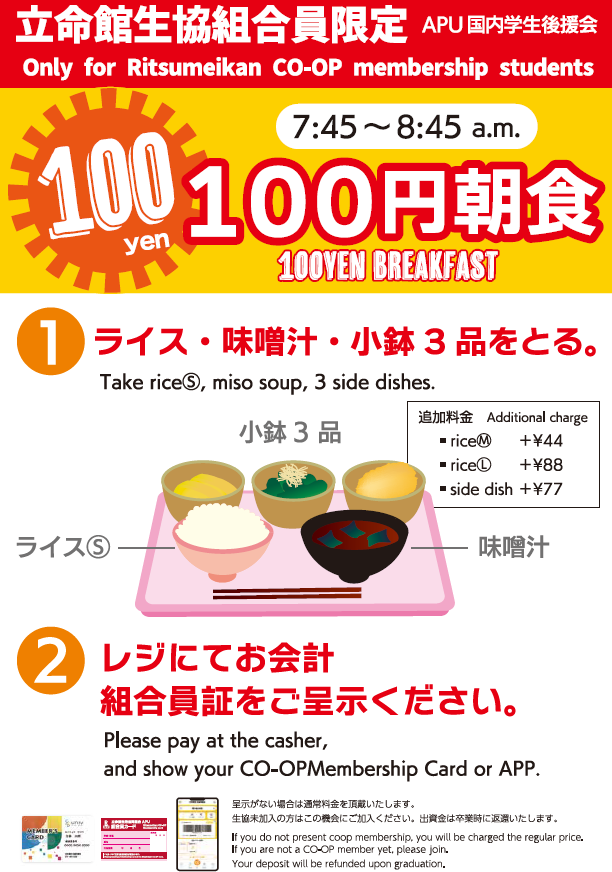 For international Student: To use this service, you must be a member of APUCOOP. Please complete your membership at the APUCOOP orientation on September 23rd.