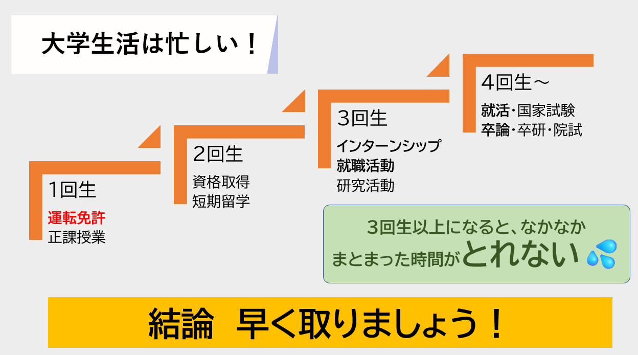 1回生は「留学や教習所」の大チャンス! ~後回しにすると後悔するかも?!~