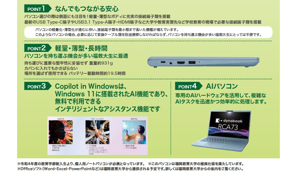 ※Microsoft365(Word・Excel・PowerPointなど)は福岡教育大学から提供されます。詳しくは福岡教育大学からの冊子(情