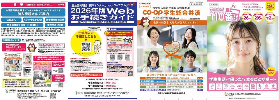 以上の推薦・総合型入試当日に生協アカデミアの資料(生協・共済・保険等加入ご案内)を配布いたしました。当日資料未受取の方で推薦合格等で入学が決まった方・上記以外の大学を受験される方(九州ルーテル学院大学・東海大学熊本キャンパス・崇城大学・尚絅大学・九州看護福祉大学)および,上記3大学で12月以降の入試を受験される方は生協アカデミアまで資料請求をお願い致します。