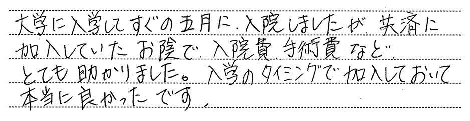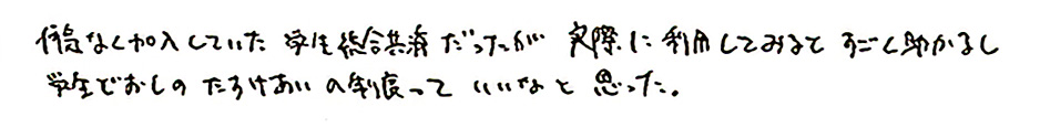 そこで、安心した大学生活を送ってもらうために学生総合共済の加入をおすすめしています。