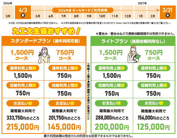 そこで、ミールカードをおススメいたします。ミールカードとは、『食の年間定期券』のことで、1日の利用金額まで、何度でもご利用いただけます。