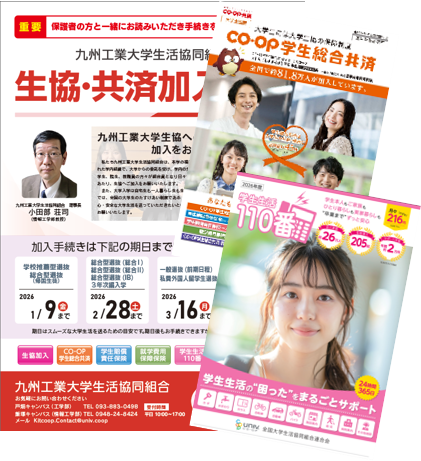 生協の加入申込の際に併せて「共済・保険」「学生生活110番」「ミールカード」「生協電子マネー」のお申込が可能です。