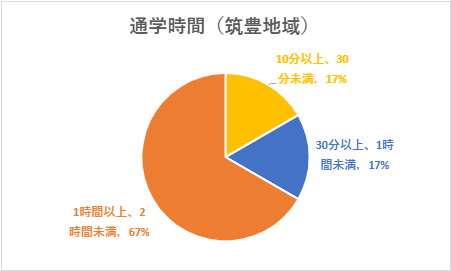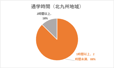 福岡地域と同様に1時間以上かけて通学する方が多いです!