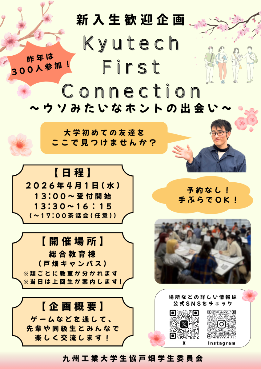 【新入生歓迎企画 Kyutech First Connection~ウソみたいなホントの出会い~】を開催します!