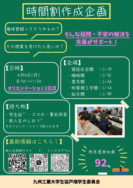 【時間割作成企画】では同じ道を歩んできた九工大の先輩が時間割作りをサポートします!!