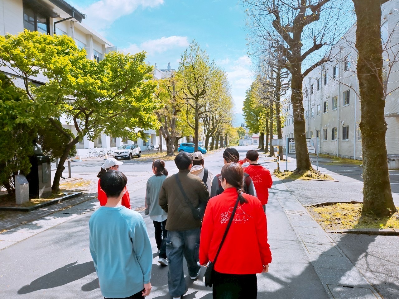 歩こう会では、散歩しながら、同じ新入生と話したり、先輩から大学生活について経験談を聞いたりすることができるよ。