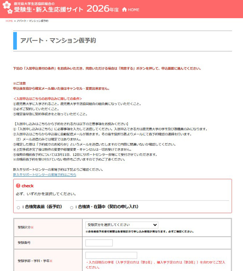 鹿児島大学生協の住まいより『予約成立』のメールが届いたら仮予約確定です。