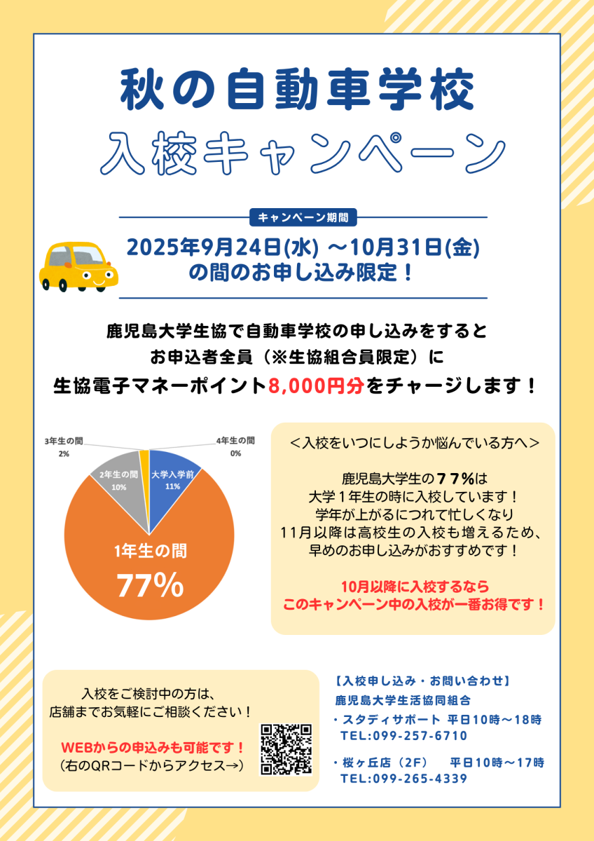 鹿児島大学生協のお店で自動車学校の申し込みをすると