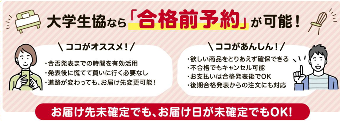 大学生協の新生活用品 3つの安心8つのメリット