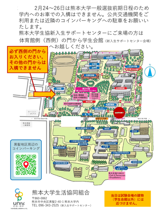 新入生サポートセンター会場アクセス(黒髪北地区)