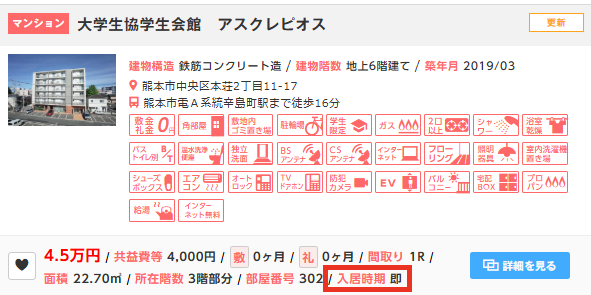 即入居できるお部屋も多数あります