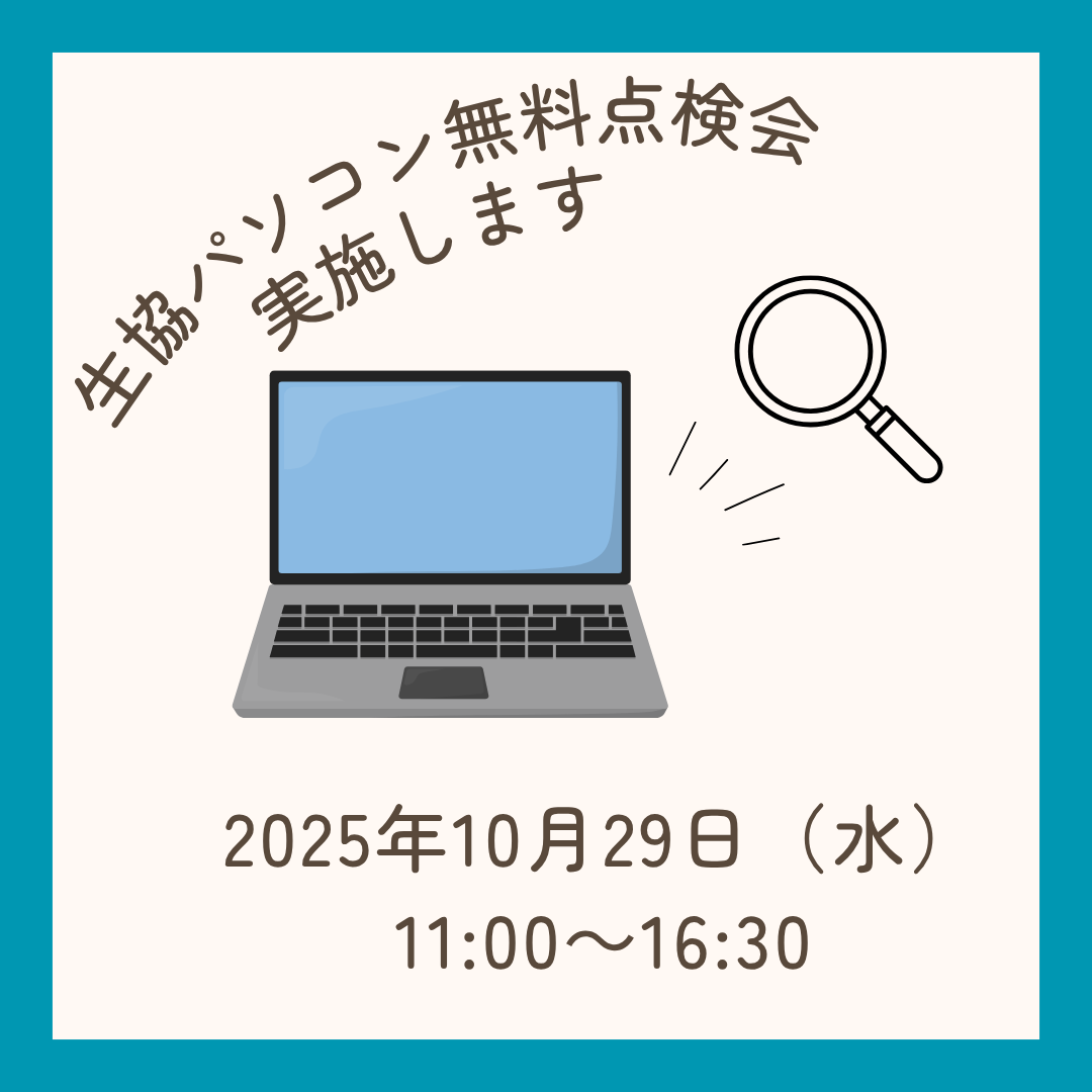生協でパソコンを購入して頂いた方対象のパソコン無料点検会のお知らせです。