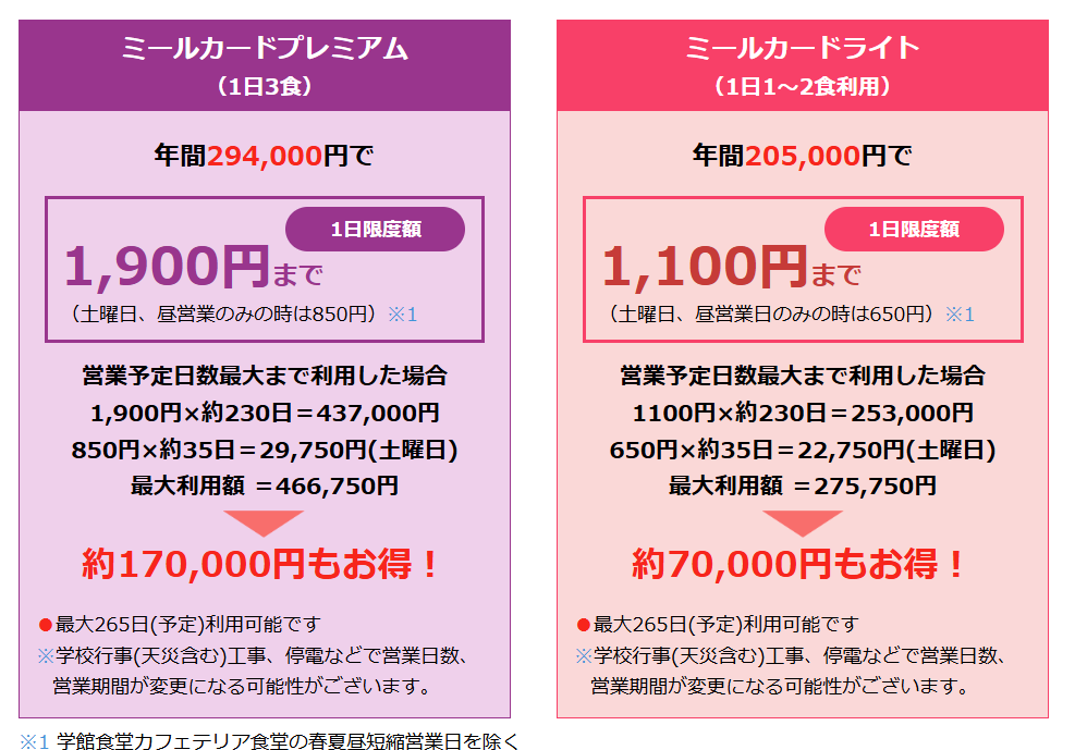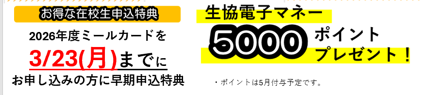 ●大学生協アプリ・学生証で利用できます。新規でミールカードをお申し込みされる方は大学生協アプリの登録が必要です。