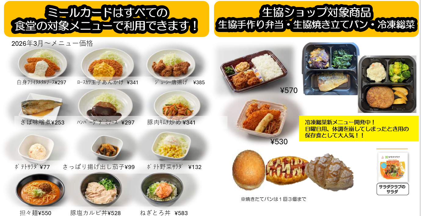 ※2026年3月より食堂一部メニューの価格改定及びリニューアルを実施させていただきます。