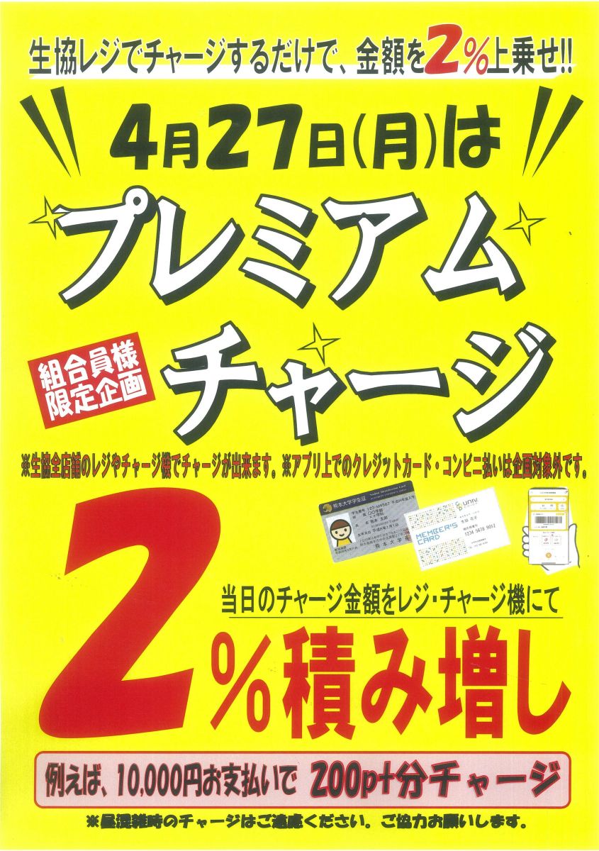 プレミアムチャージデー4/27(月)