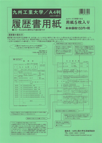 九州工業大学の交渉の入ったオリジナルの履歴書を生協で取り扱っております。