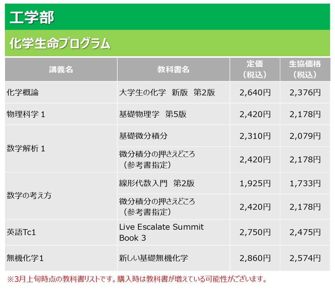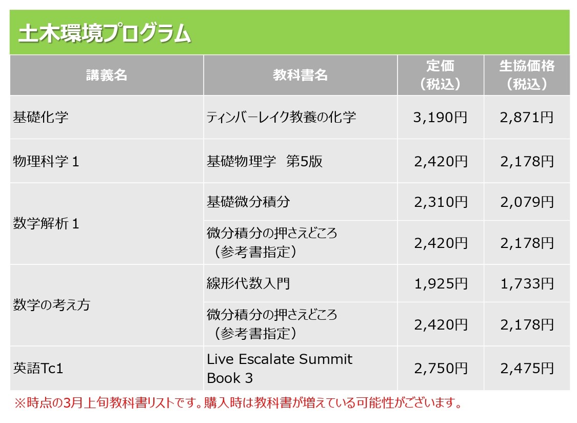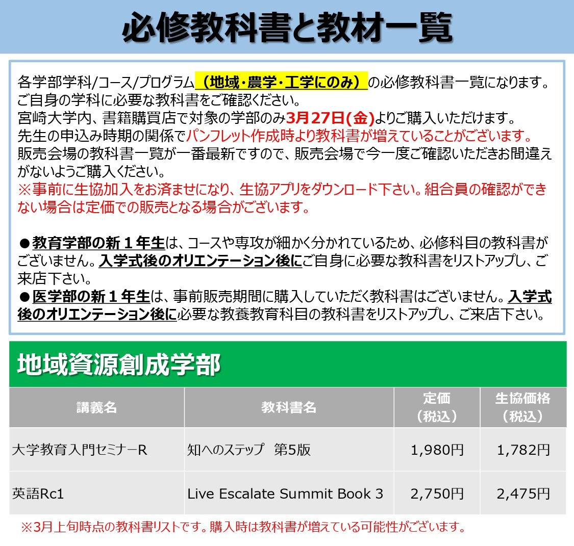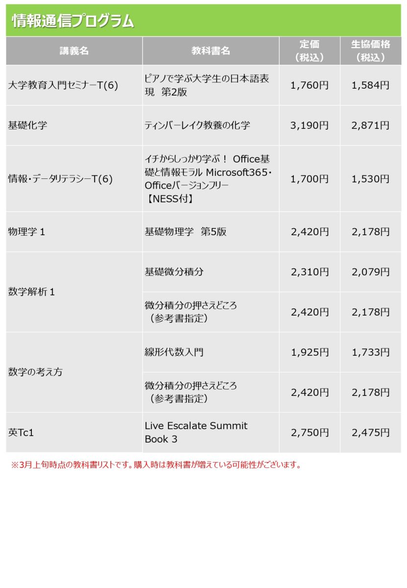 » 新入生 必修教科書リストはこちら