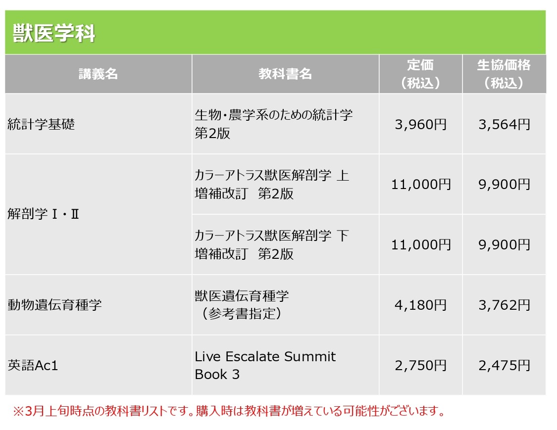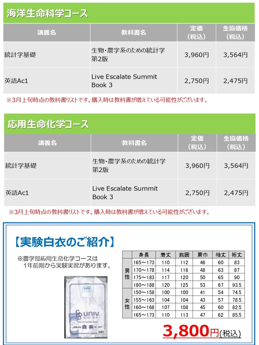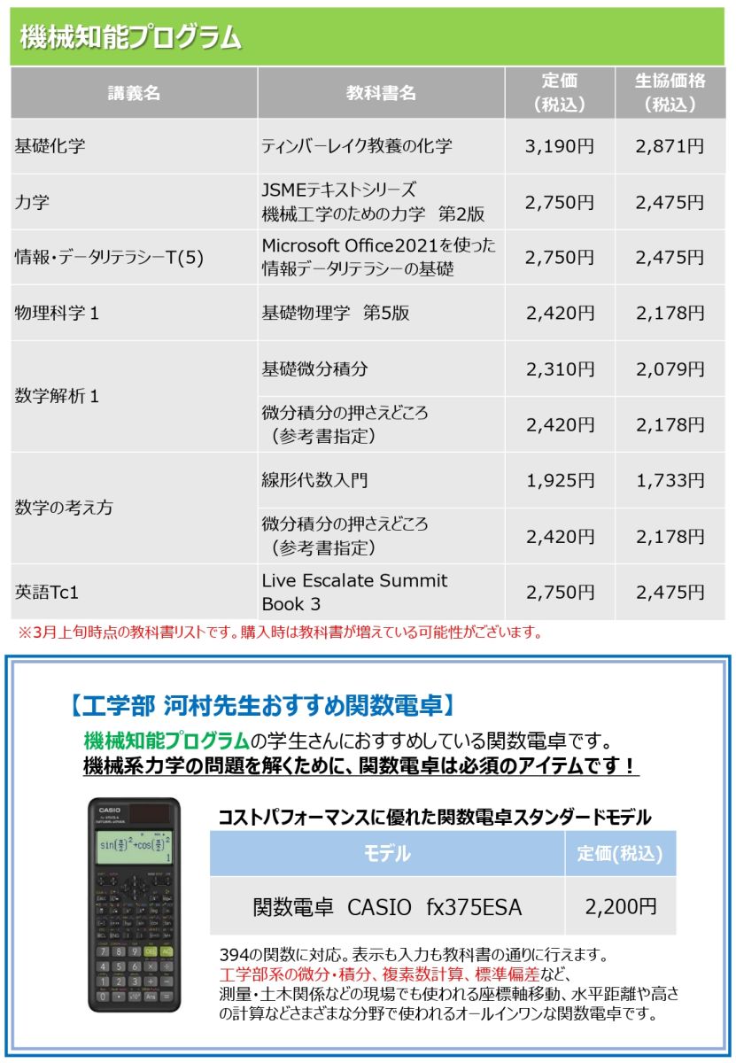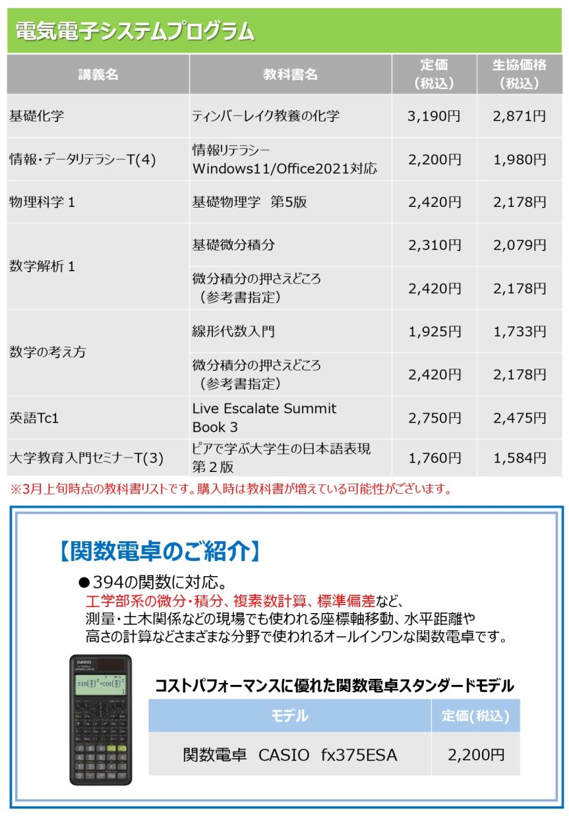 » 新入生 必修教科書リストはこちら