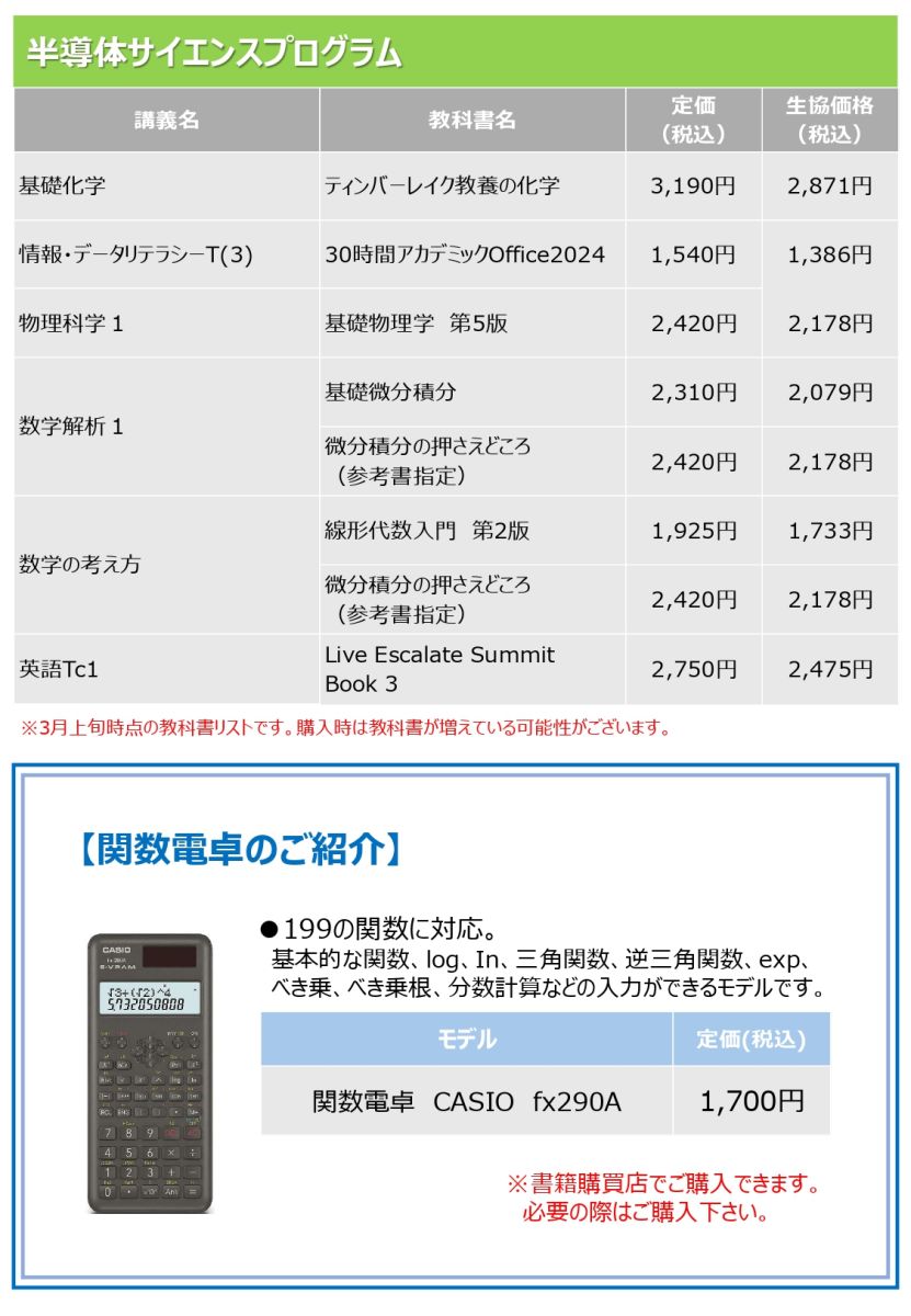 新入生 必修教科書リストはこちら