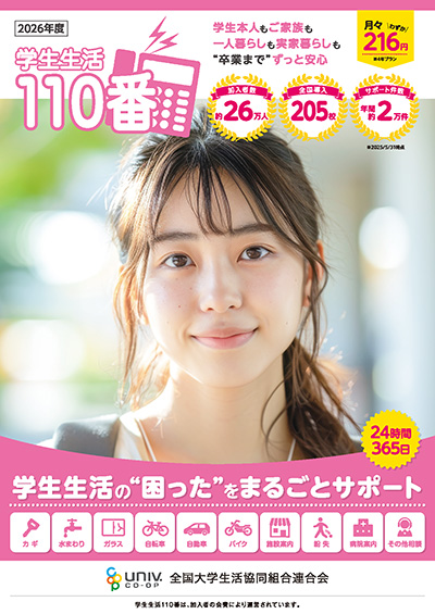 生協が発行する資料では、入学前に「知りたい」情報を分かりやすくお届けしています。2026年版は、資料請求の確認ができ次第、ゆうメール便にて発送いたします。合格から入学、そして授業開始までに必要となる情報を網羅した、全員必読の資料です。