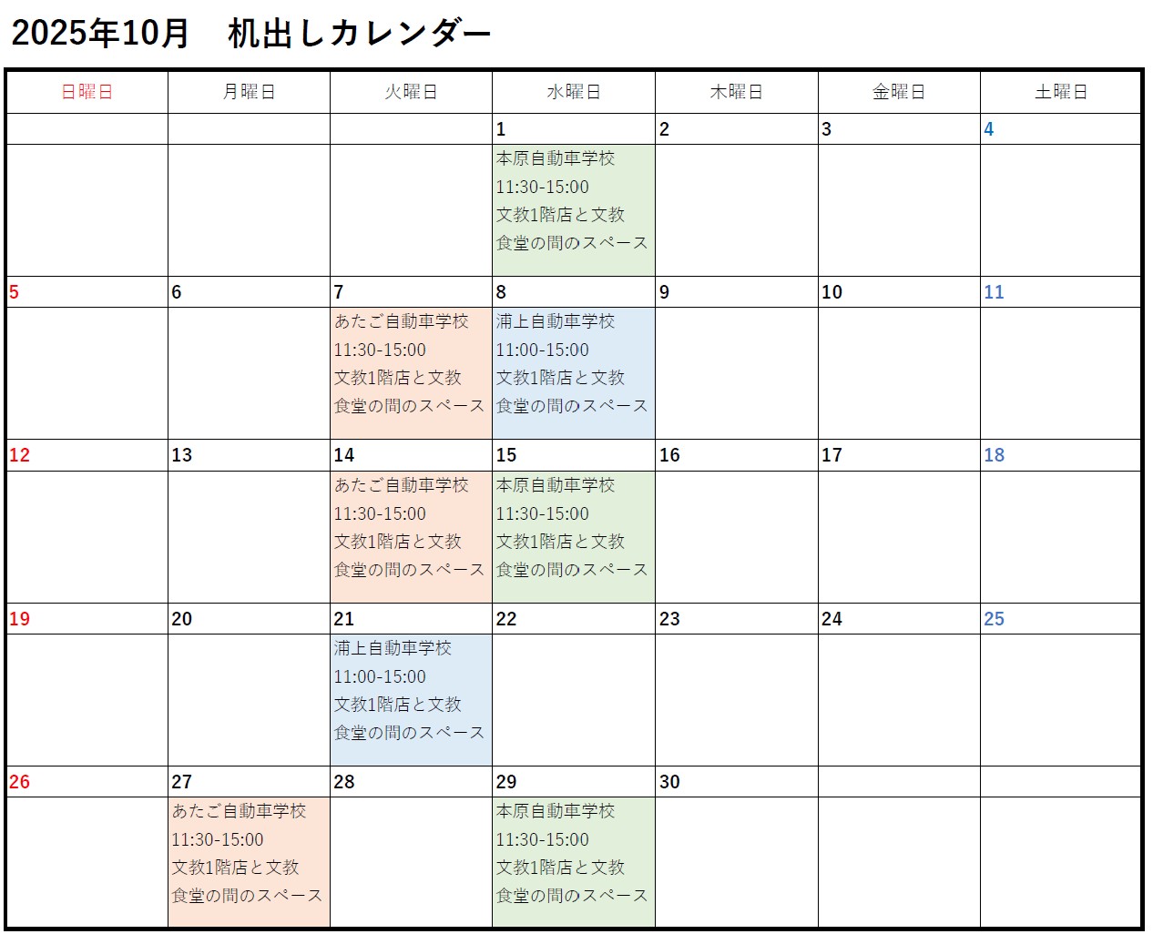 文教1階店と文教食堂1階の間のスペースにておこないます。