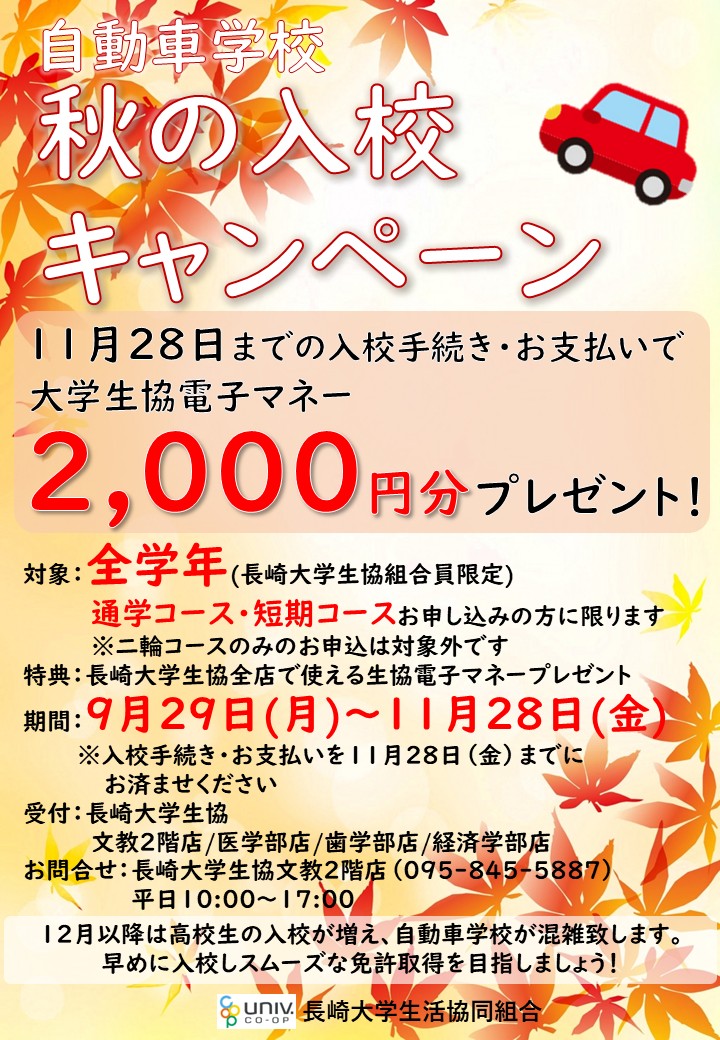 昨年大好評だった自動車学校・秋の入校キャンペーンが