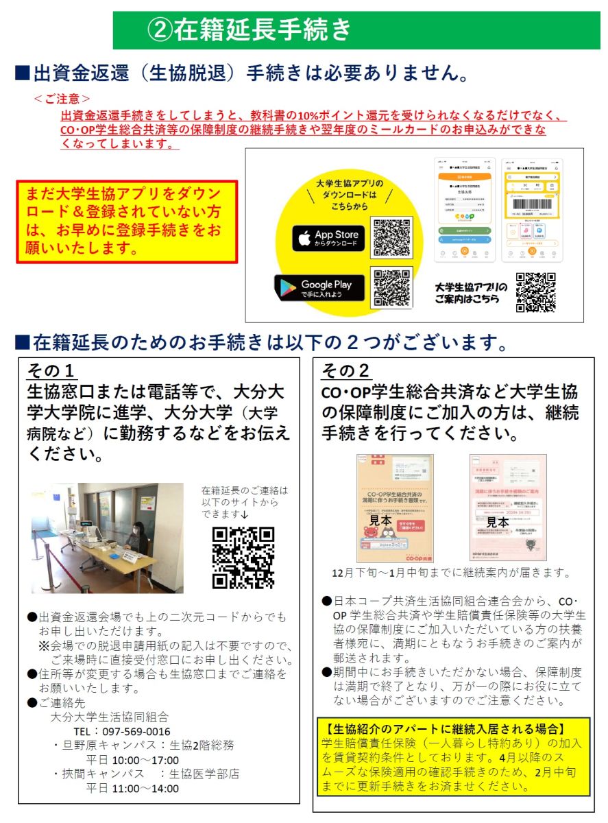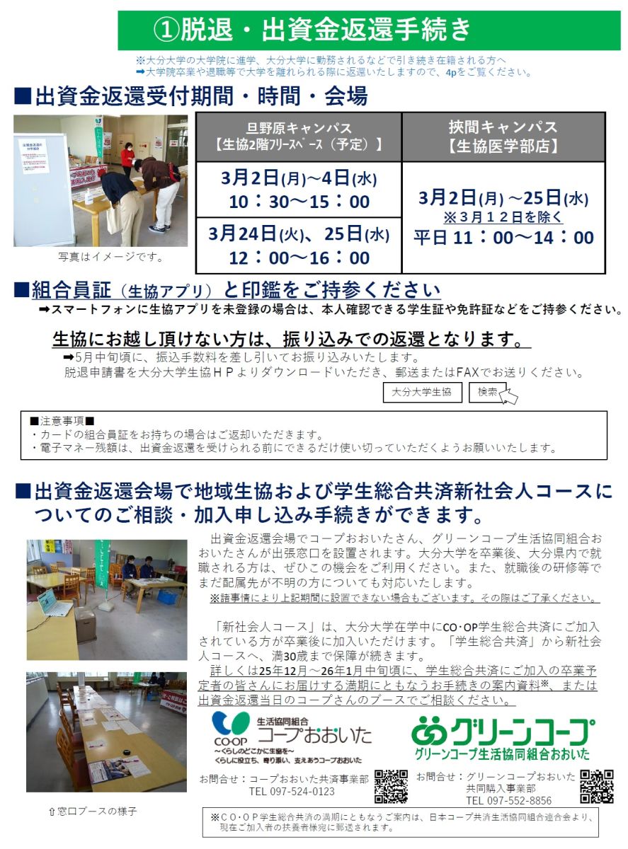 大分大学生活協同組合 出資金返還係 行き