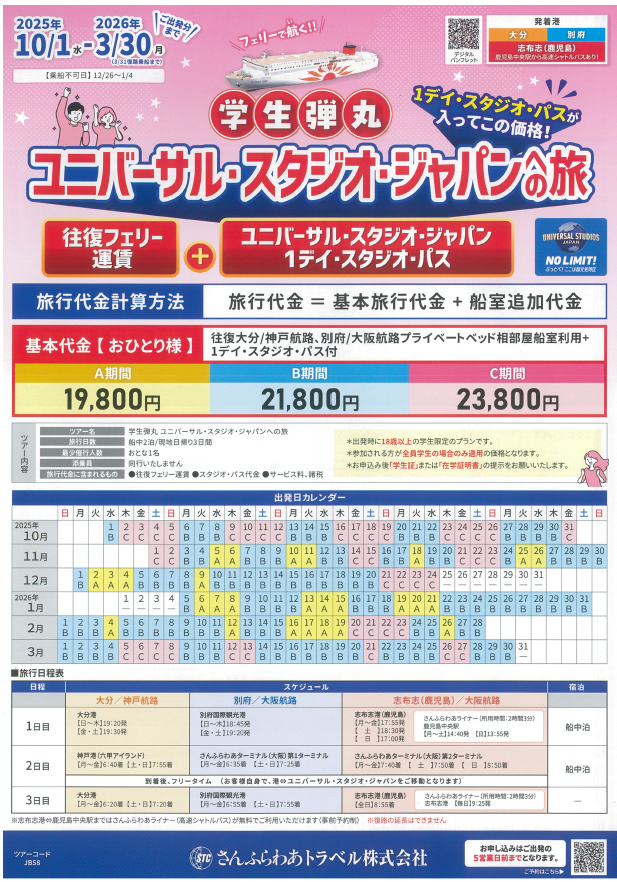 - フェリーさんふらわあで行くユニバーサルスタジオジャパンへの旅行も取り扱っています。