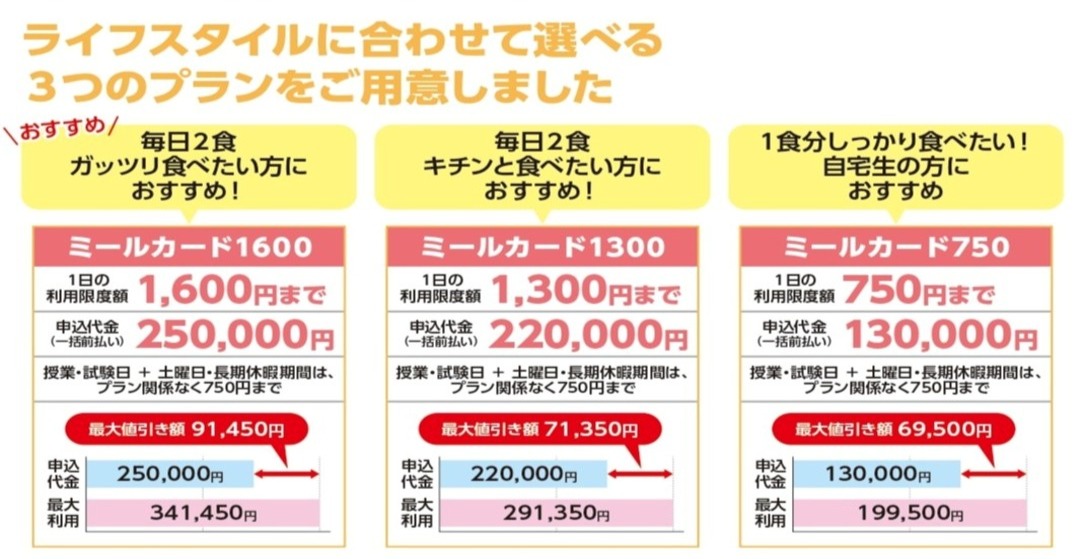 ミールカードは、大学生協が独自に開発した「生協食堂年間利用定期券」です。