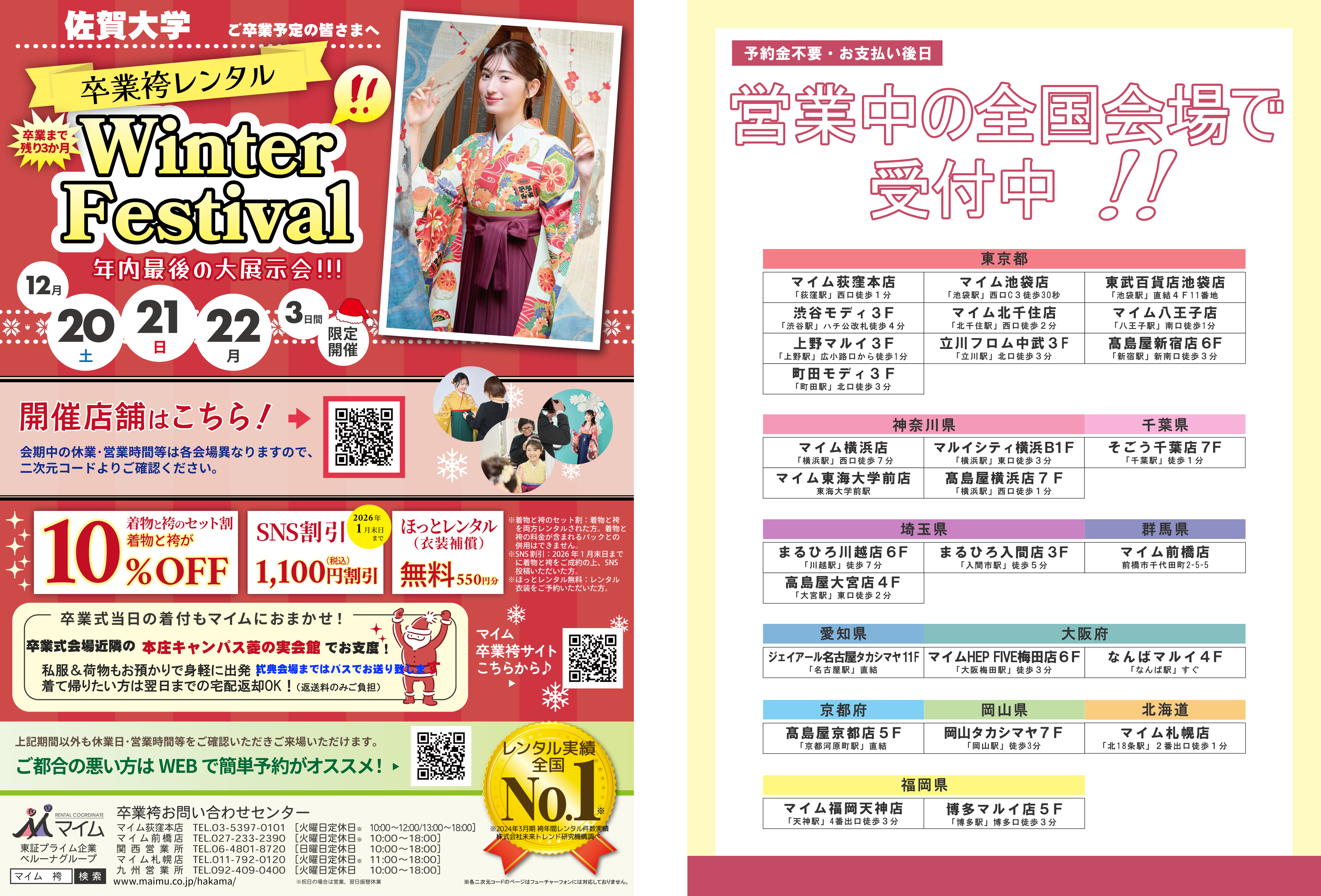 A. 展示会当日に利用申し込みいただいた場合でも、後日佐賀大学生協大学会館店でのご精算になります。