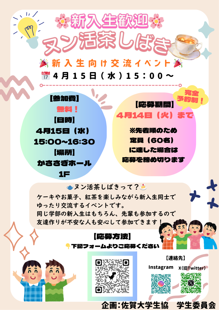 佐賀大学生協 学生委員会による新入生歓迎企画を実施予定です!