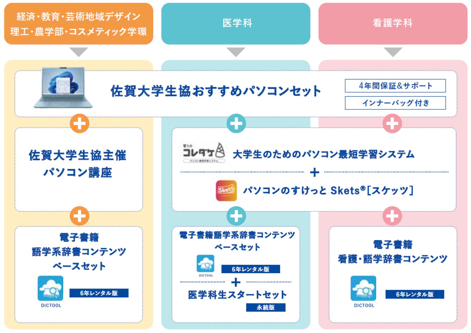 パソコンの購入を検討している新入生の皆様へ 佐賀大学生協では充実した大学生活を安心するだけでなく、入学後も安心して大学生活を過ごすために、学修サポートセットをご提案しています!