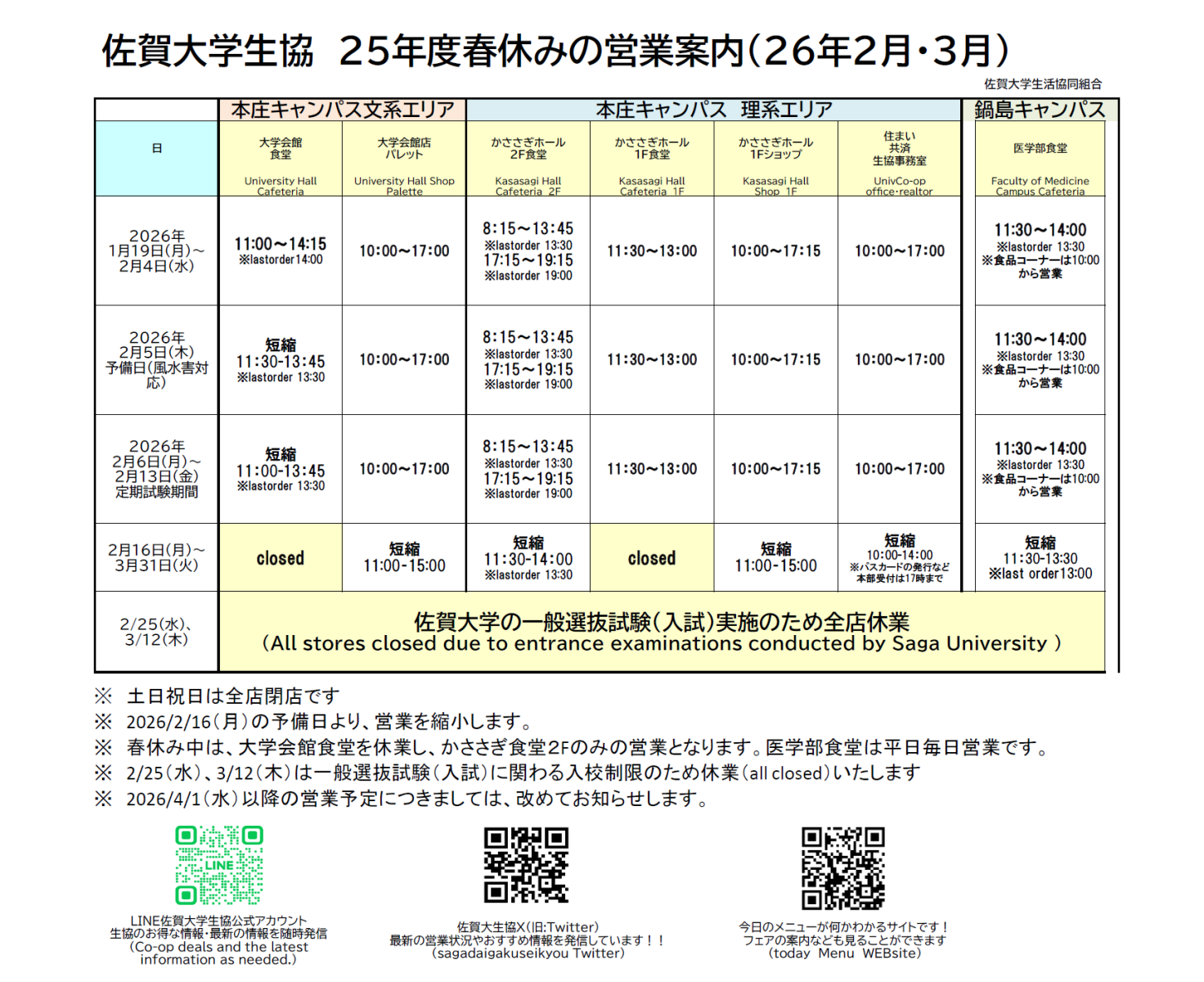 いつも佐賀大学生協をご利用いただき、ありがとうございます。