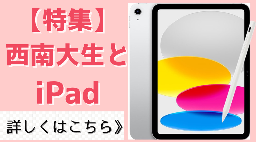 パソコンはどこでも活躍します。授業ではもちろん、図書館の資料を検索するときにも使います。さらに私はパソコンとiPadを組み合わせて、iPadでデジタルノート(OneNote)を取ってクラウドで連携しています。使いこなせば膨大な資料を保管しておく「もう一つの脳」になります。またパソコンで資料を見ながら受ける授業もあり、学外では、オンラインイベントへの参加やアルバイトでの書類提出でもパソコンを使います。これらのデバイスは手放せない存在となっています。