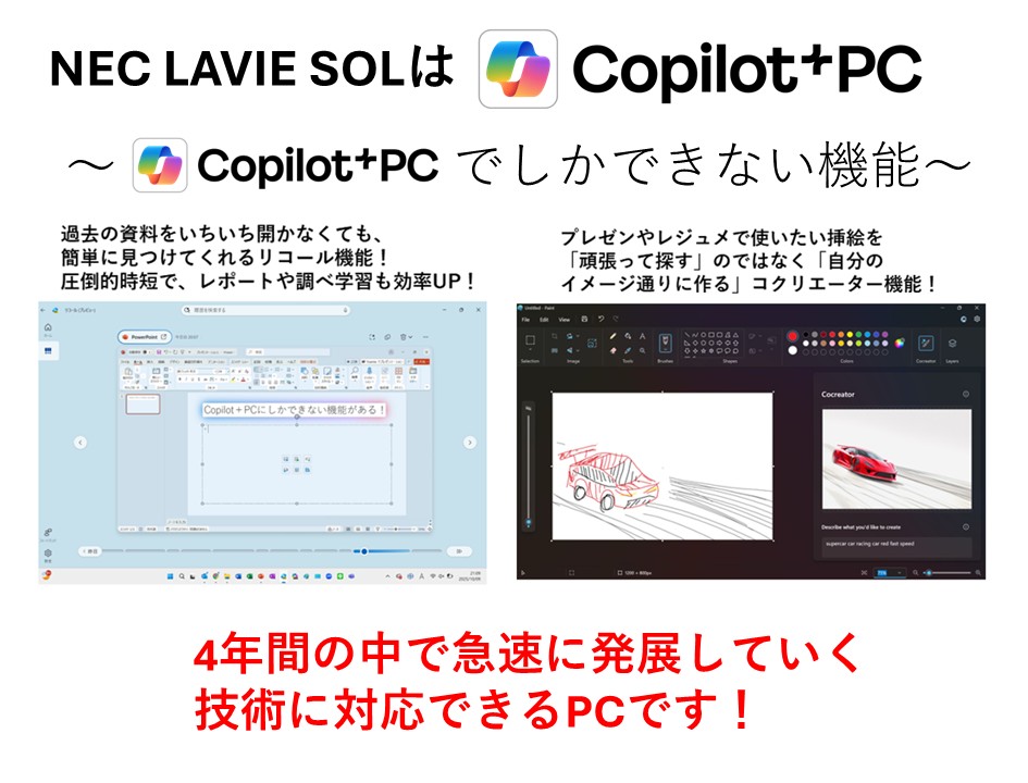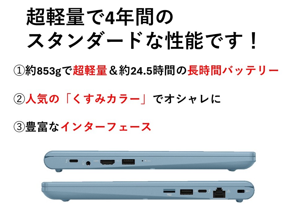 NEC LAVIE SOL本体にはUSB Type-C端子のみ付いているため、USB Type-A端子やモニターなどに映像を映す際に使用するHDMI端子もご使用いただけるように、USBマルチハブを生協価格で販売しております。