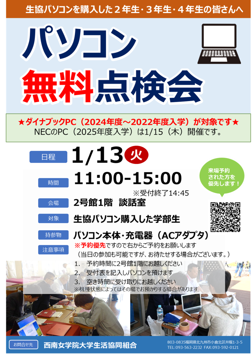 生協でパソコンを購入された皆様をを対象に、パソコン無料点検会を開催します!