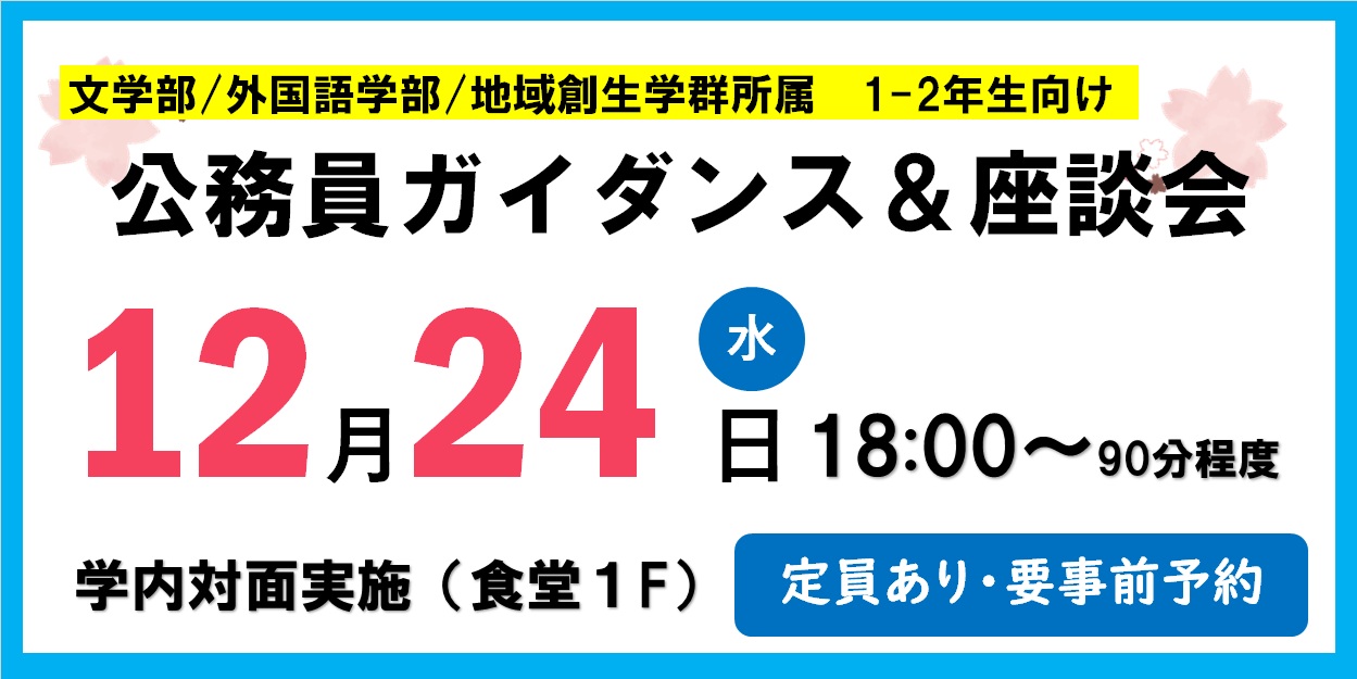 ★2025年度 公務員試験入門講座★12/24(水) 公務員学部別ガイダンス&座談会実施決定!!!(要事前予約)