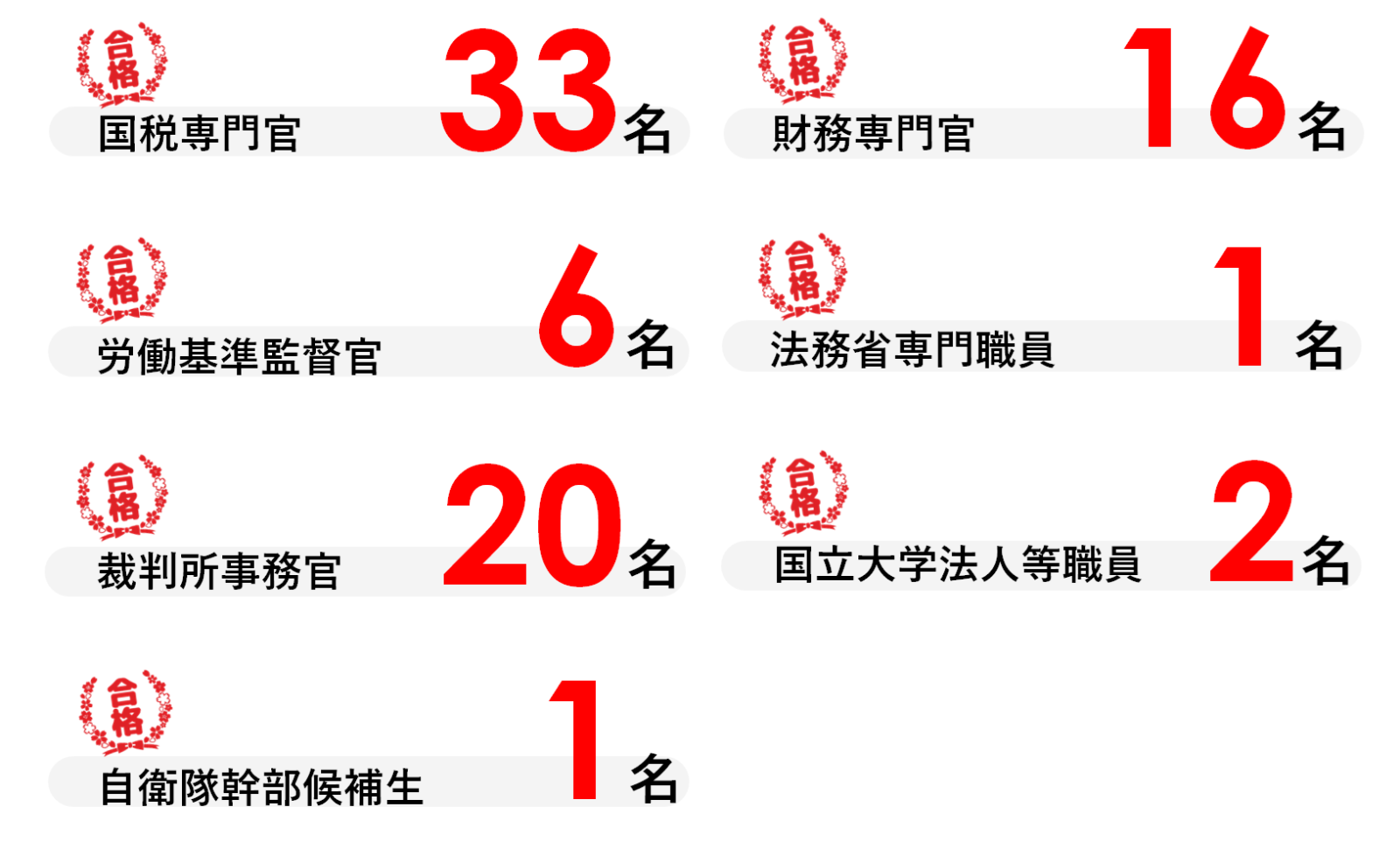 ※公務員試験対策講座(2024年度)受講生のうち、民間企業や大学院進学者を除いた公務員試験受験者に対しての合格率