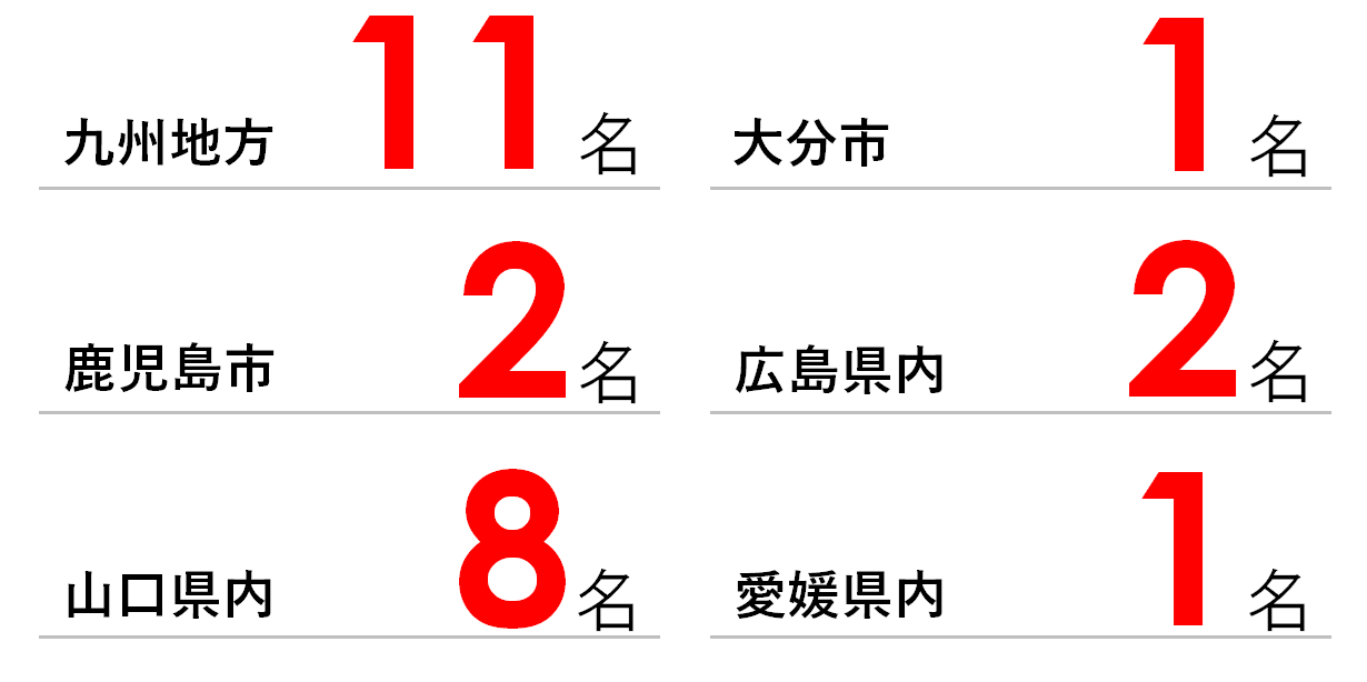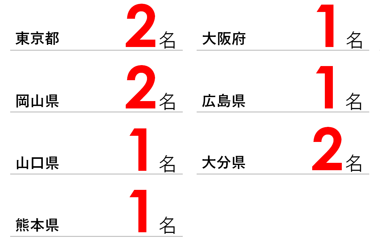 東京消防庁、福岡市消防局、北九州市消防局、岡山市消防局、熊本市消防局、倉敷市消防局