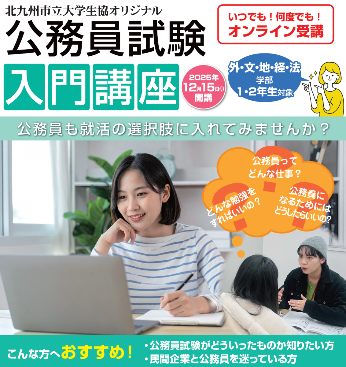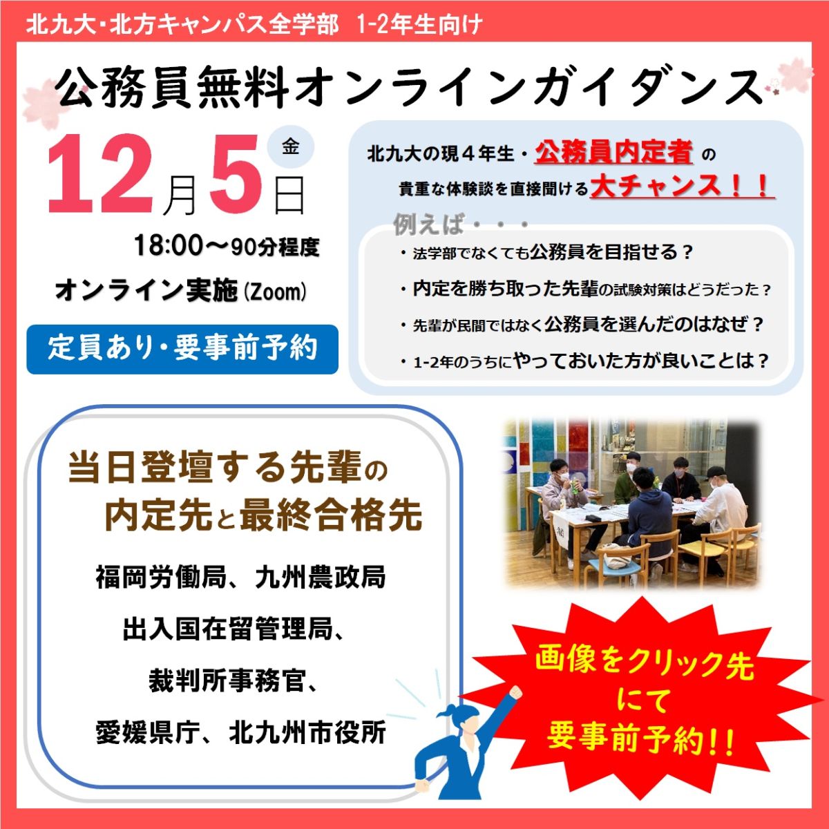★2025年12月5日(金) 北九大4年生公務員内定者による公務員無料オンラインガイダンス★