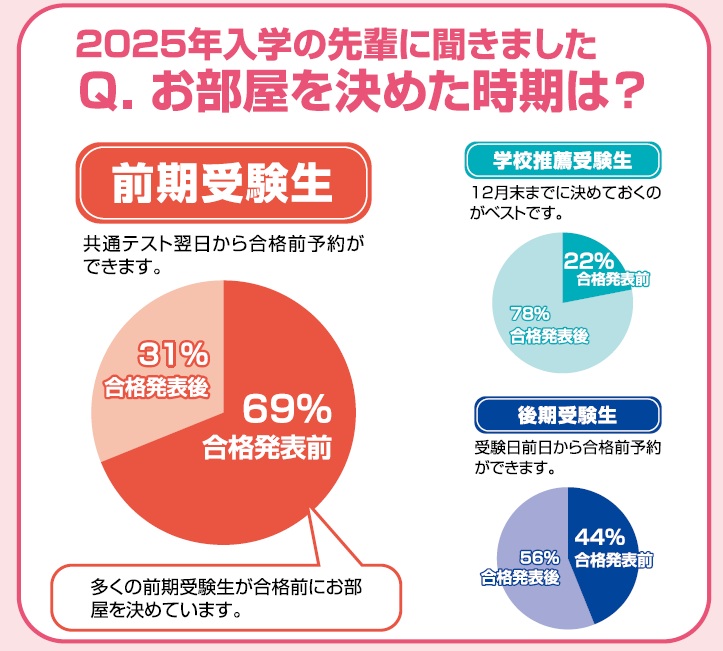受験前から合格発表日までお部屋を押さえることが出来る仕組みです。