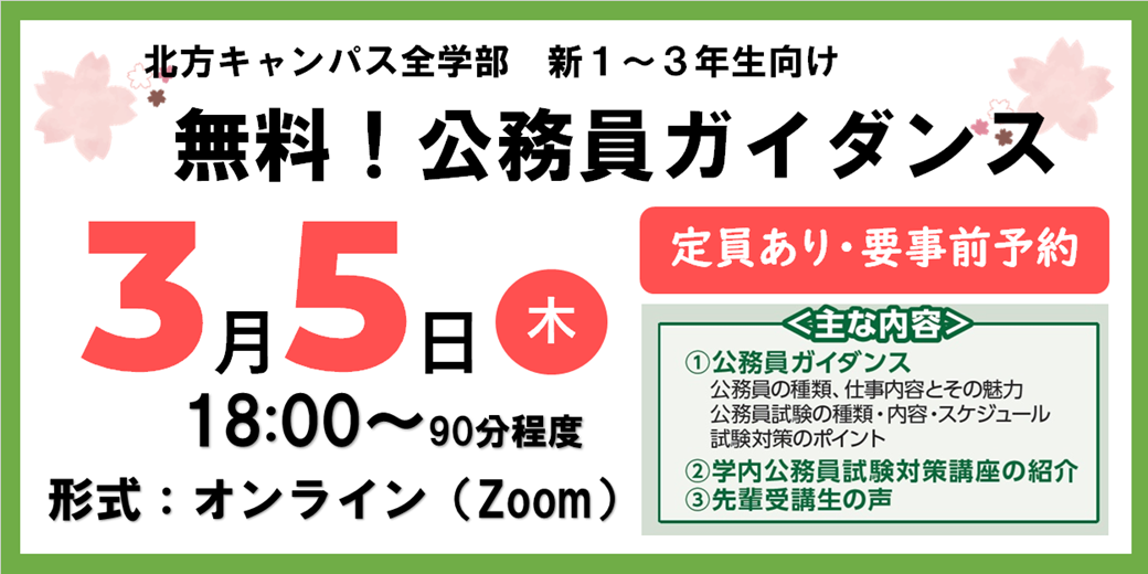 ◆【北方・主に新2-3年生】3/5(木)公務員ガイダンス開催お知らせ◆